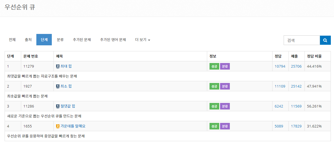 백준 알고리즘에서 제공되는 문제들 중 단계별로 문제 풀기 - 우선순위 큐 1번~4번을 파이썬으로 풀어보았다.우선순위 큐 4문제 모두 깃허브에 올려놓았다.