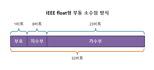 - 지수 : 크기 표현. 가수의 어디쯤에 소수점이 있는지 나타냄