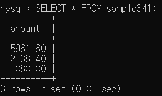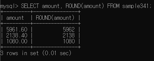 ROUND함수는 반올림을 하는데 사용하는 함수이다. 다음 sample341을 보면 소수점까지 표시되어 있다.