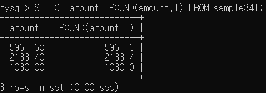 SELECT amount, ROUND(amount,1) FROM sample341;