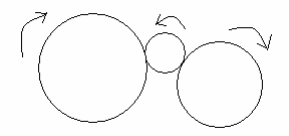 반지름이 12인 링과 4인 링이 붙어있다고 생각해보자. 맞닿아 있기 때문에 몇바퀴를 돌든 돌아가는 원의 둘레의 길이는 같아야 한다. 이때 원의 둘레는 반지름에 비례한다. 즉 반지름이 12인 링이 한 바퀴 돌았다면 4인 링은 세 바퀴 돌아야 한다.