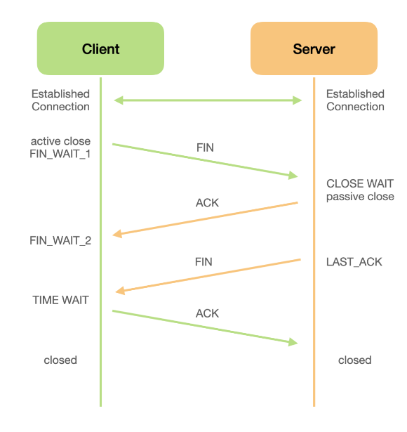 - 클라이언트는 FIN 메세지를 확인했다는 ACK을 보낸다.