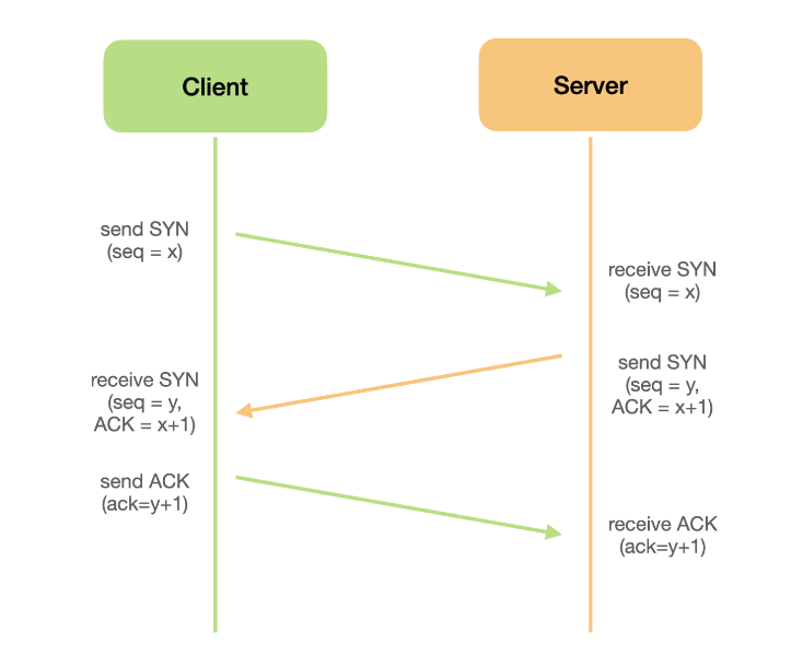 - 클라이언트는 서버의 수락 응답인 ACK(x+1)와 SYN(y) 패킷을 받고 ACK(y+1)을 서버로 보내면 연결이 성립된다.