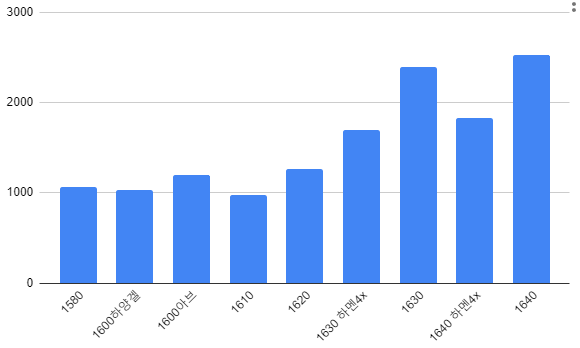 2. 1580~1620 주간레이드 효율 비슷