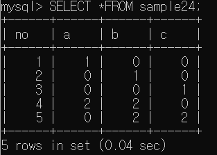 SELECT * FROM sample24 WHERE no = 1 OR 2;