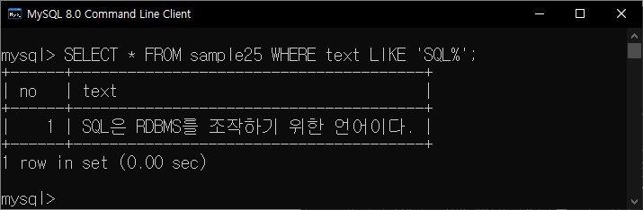 SELECT * FROM sample25 WHERE text LIKE 'SQL%';