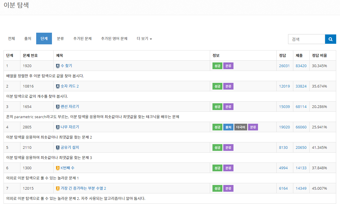 백준 알고리즘에서 제공되는 문제들 중 단계별로 문제 풀기 - 이분 탐색 1번~7번을 파이썬으로 풀어보았다. 이분 탐색